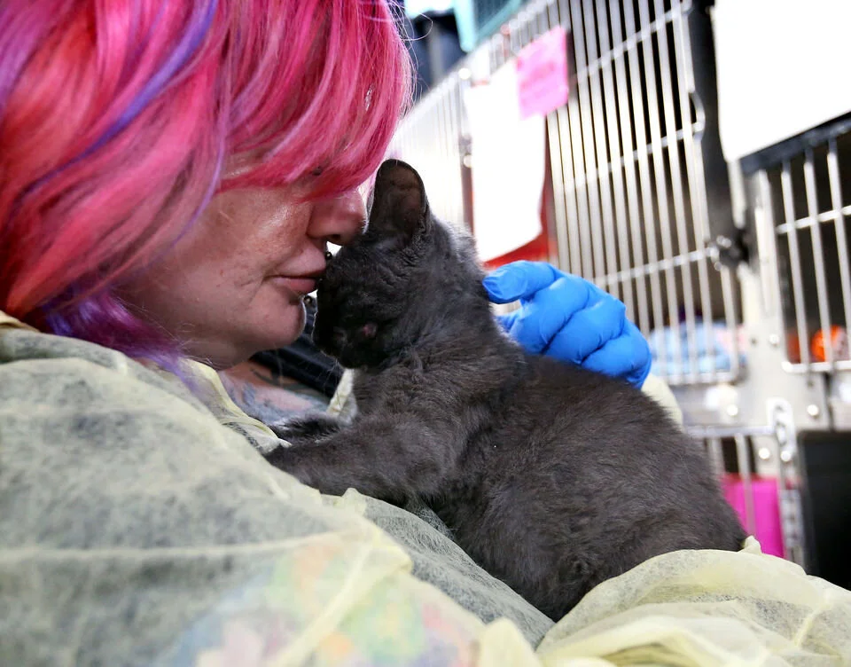 Veterinary technician Sam Friedman, who manages the Kitten Nursery at St. Hubert's Animal Welfare Center in Madison, cuddles Smokey, Monday, Sept. 30, 2019. (Lori M. Nichols | NJ Advance Media for NJ.com)