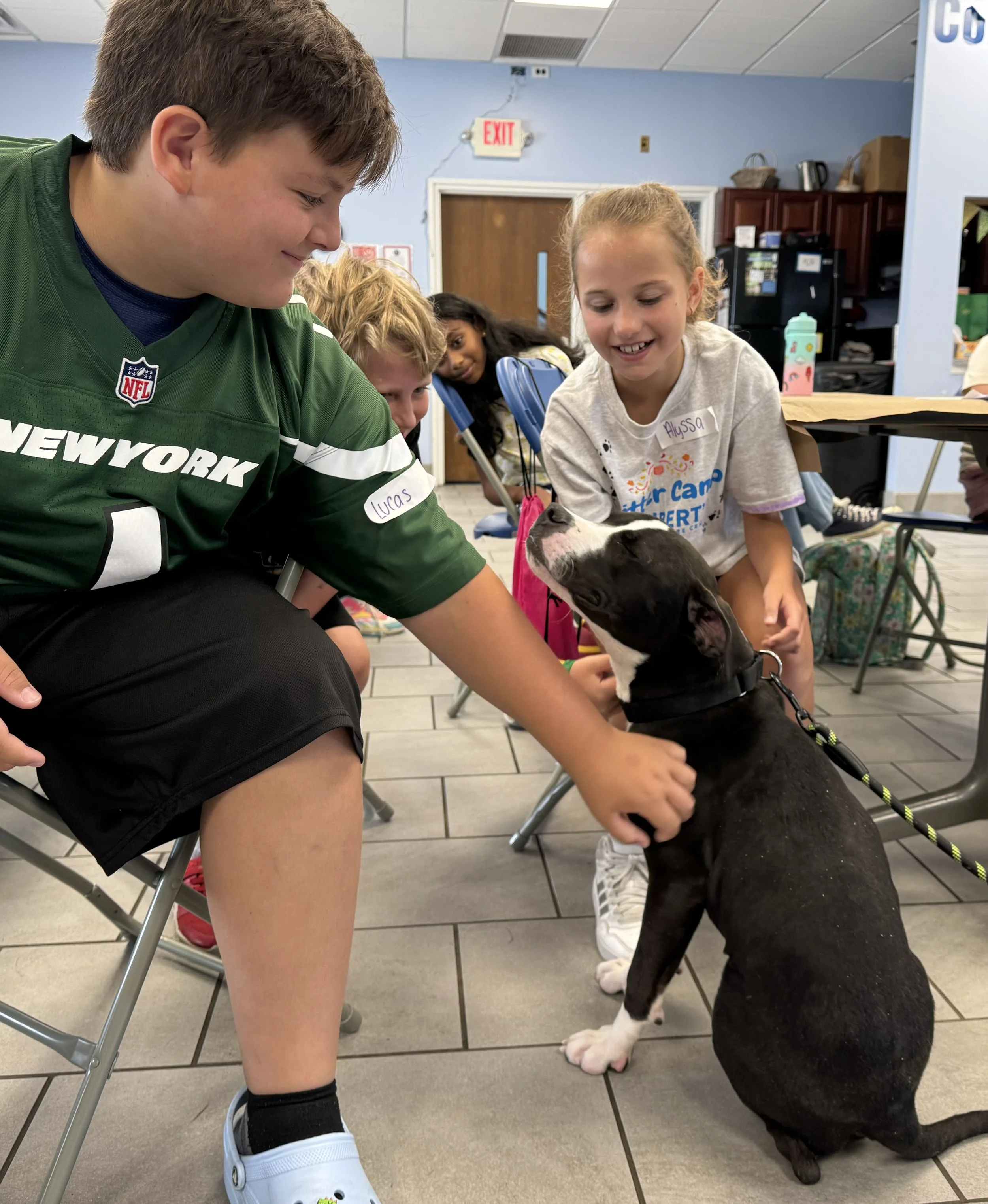 Campers get up close with shelter animals and special animal guests brought in just for camp week.